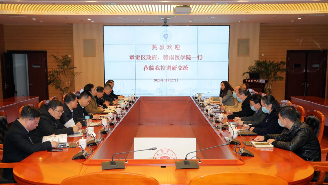 11月27日,贛南醫學院校長劉潛,江西贛州市章貢區委常委、副區長卜治溢一行來我校調研。校長來茂德、副校長陸濤及相關職能部門負責人在江寧校區接待了來訪客人,雙方就交流合作進行了探討,座談會由副校長陸濤主持。