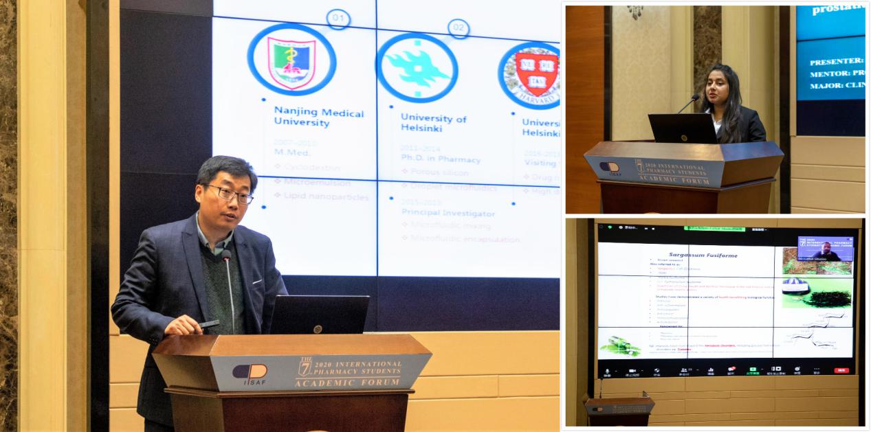 11月28日,由國(guó)際教育學(xué)院主辦的第七屆來華藥學(xué)留學(xué)生學(xué)術(shù)論壇在江寧校區(qū)經(jīng)管文樓111報(bào)告廳舉行。受疫情影響,本次論壇采取線下和線上會(huì)議相結(jié)合的形式。論壇吸引了來自上海交通大學(xué)、西安交通大學(xué)等多所高校的200余位留學(xué)生前來參會(huì)。中國(guó)藥科大學(xué)副校長(zhǎng)孔令義、江蘇省教育廳對(duì)外合作與交流處副處長(zhǎng)施蘊(yùn)玉、南京市教育局高等教育與師資培訓(xùn)處處長(zhǎng)王賓出席論壇,首都醫(yī)科大學(xué)王倩教授、南京信息工程大學(xué)鄭有飛教授、沈陽藥科大學(xué)高健教授、溫州醫(yī)科大學(xué)黃志鋒教授、南京醫(yī)科大學(xué)張東輝教授、中國(guó)藥科大學(xué)丁選勝教授、譚樹華教授、胡容教授、劉東飛教授擔(dān)任此次論壇評(píng)委專家。論壇由國(guó)際教育學(xué)院副院長(zhǎng)朱志龍主持。