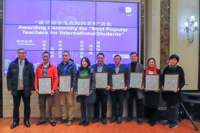 副校長(zhǎng)孔令義為“最受留學(xué)生歡迎教師”代表頒發(fā)證書