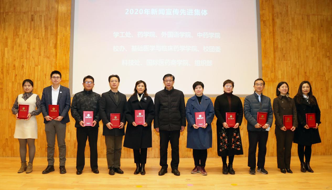 隨后,陳衛忠部長宣讀表彰決定:學生工作處(部)等10個部門、單位,彭紫新等11位通訊員分獲2020年度新聞宣傳工作集體和先進個人。校黨委副書記、副校長王正華為獲獎集體和個人頒獎。外國語學院黨總支書記賀麗君,基礎醫學與臨床藥學學院輔導員劉瑞環分別代表獲獎集體和個人作經驗分享。