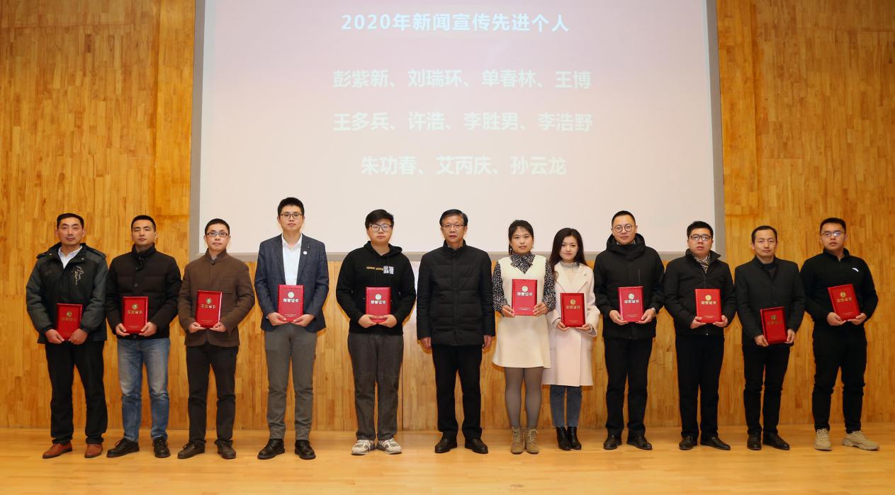表彰大會最后,校黨委副書記、副校長王正華作總結發言。他指出,過去的一年,宣傳隊伍不斷壯大,宣傳思想工作的針對性、實效性和吸引力、感染力不斷增強,學校主流思想積極向上。新的一年我們要用高標準、高站位、高起點迎接十四五開局和建黨100年;用新理念、新舉措、新格局創新工作、拓展格局;通過深思考、深領會、深加工,創作一批思想高度、有內容深度、有情感溫度的原創性作品。