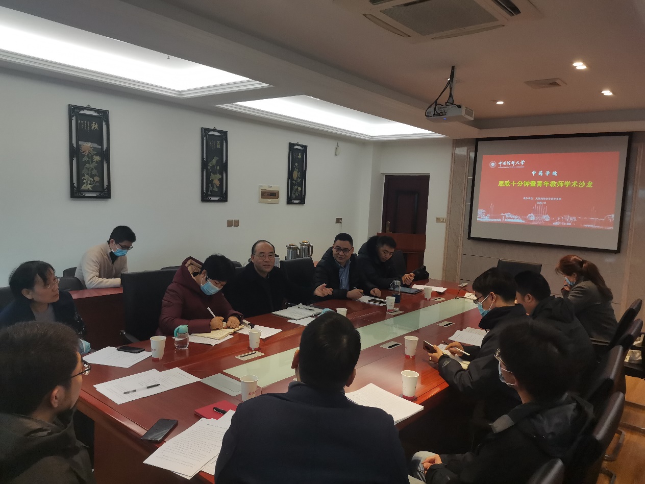 12月22日,中藥學(xué)院天然藥物化學(xué)系黨支部在江寧校區(qū)實(shí)驗(yàn)樓E216會議室開展了“思政十分鐘暨青年學(xué)術(shù)沙龍”活動(dòng),校長來茂德、中藥學(xué)院黨委書記趙健、天然藥物化學(xué)系黨員們參加了活動(dòng)。