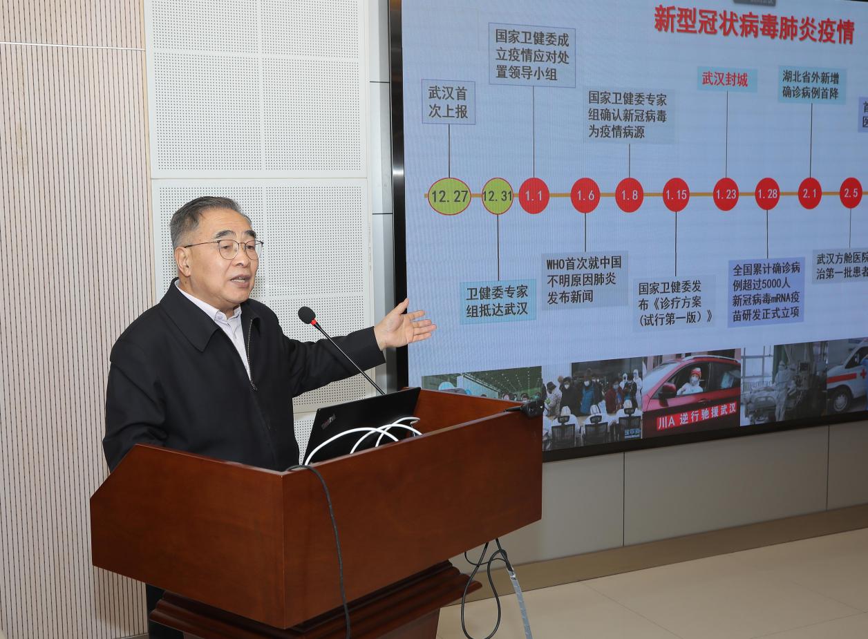 接下來,人民英雄張伯禮院士作抗擊疫情專題報(bào)告。他結(jié)合親身經(jīng)歷和實(shí)戰(zhàn)經(jīng)驗(yàn),回顧了抗疫斗爭(zhēng)的不平凡歷程,深刻概括了中國共產(chǎn)黨和社會(huì)主義制度領(lǐng)導(dǎo)下我國人民的偉大抗疫精神,闡述了中醫(yī)藥在疫情和未來重大疾病防控中的獨(dú)特優(yōu)勢(shì),并針對(duì)病毒結(jié)構(gòu)、中醫(yī)藥治療新冠肺炎等科研問題,病毒二次感染、疫苗接種等民生問題,給予了精彩的講解和指導(dǎo)性建議。