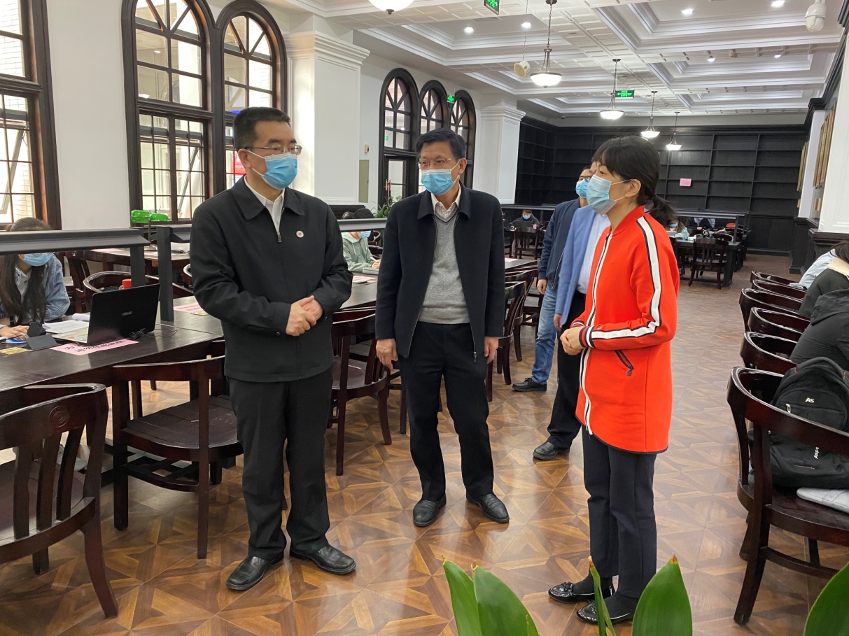4月19日至20日,校黨委書記金能明帶隊深入江寧校區,就落實學校疫情防控的布置和要求,確保春季學期學生返校開學各項工作順利運行進行檢查。校黨委副書記、副校長王正華陪同檢查,后勤服務集團、基建后勤處、團委、學工處、圖書與信息中心等職能部門負責人陪同參加。